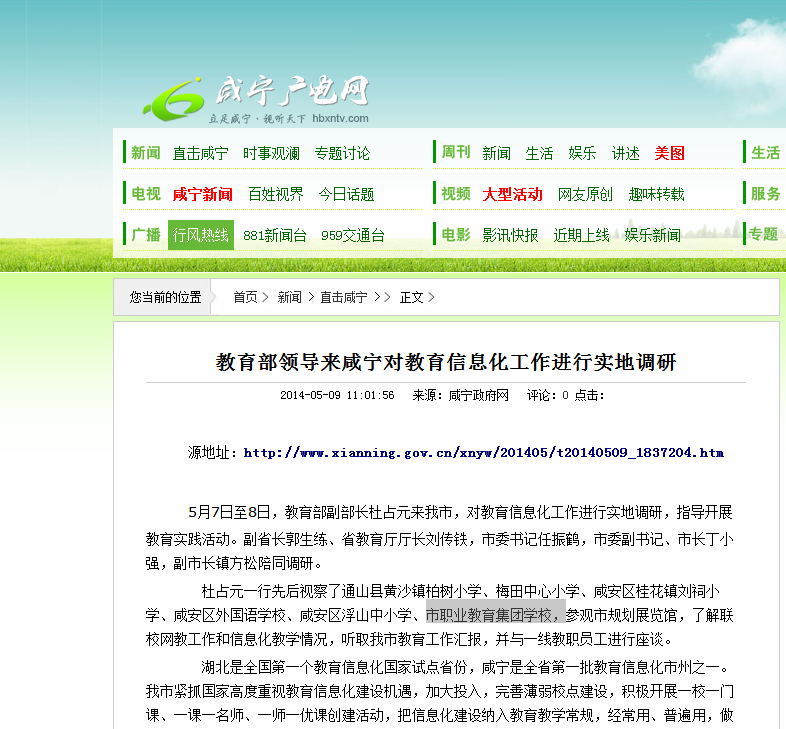 教育部领导来咸宁对教育信息化工作进行实地调研